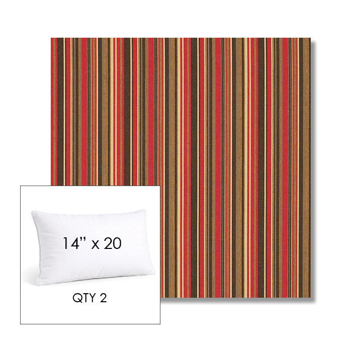 Custom 14" x 20" Lumbar Pillows - SET OF 2 square outdoor pillows available in over 700 Sunbrella® fabrics. Choose piping or knife-edge finish with optional covered button detail. Each pillow includes a zipper opening and premium outdoor insert for comfort, durability, and long-lasting outdoor performance.