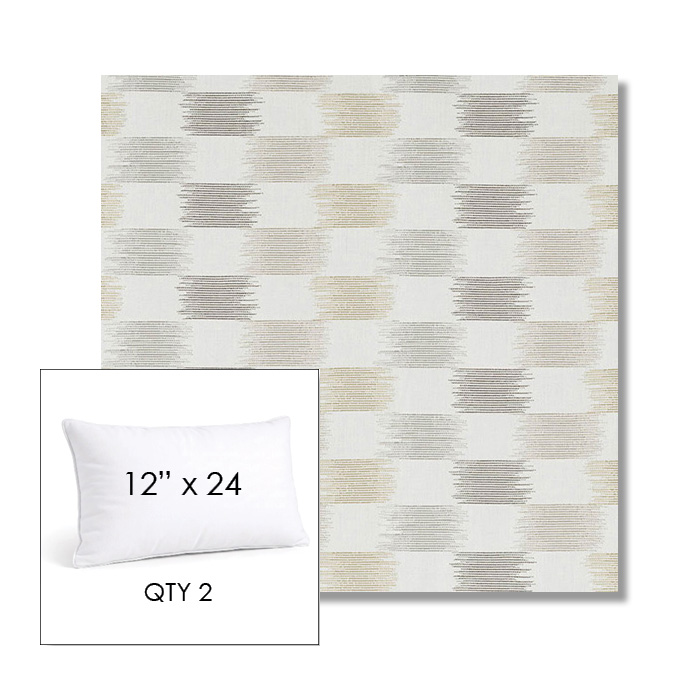 Custom 12" x 24" Lumbar Pillow SET OF TWO, square outdoor pillows available in over 700 Sunbrella® fabrics. Choose piping or knife-edge finish with optional covered button detail. Each pillow includes a zipper opening and premium outdoor insert for comfort, durability, and long-lasting outdoor performance.