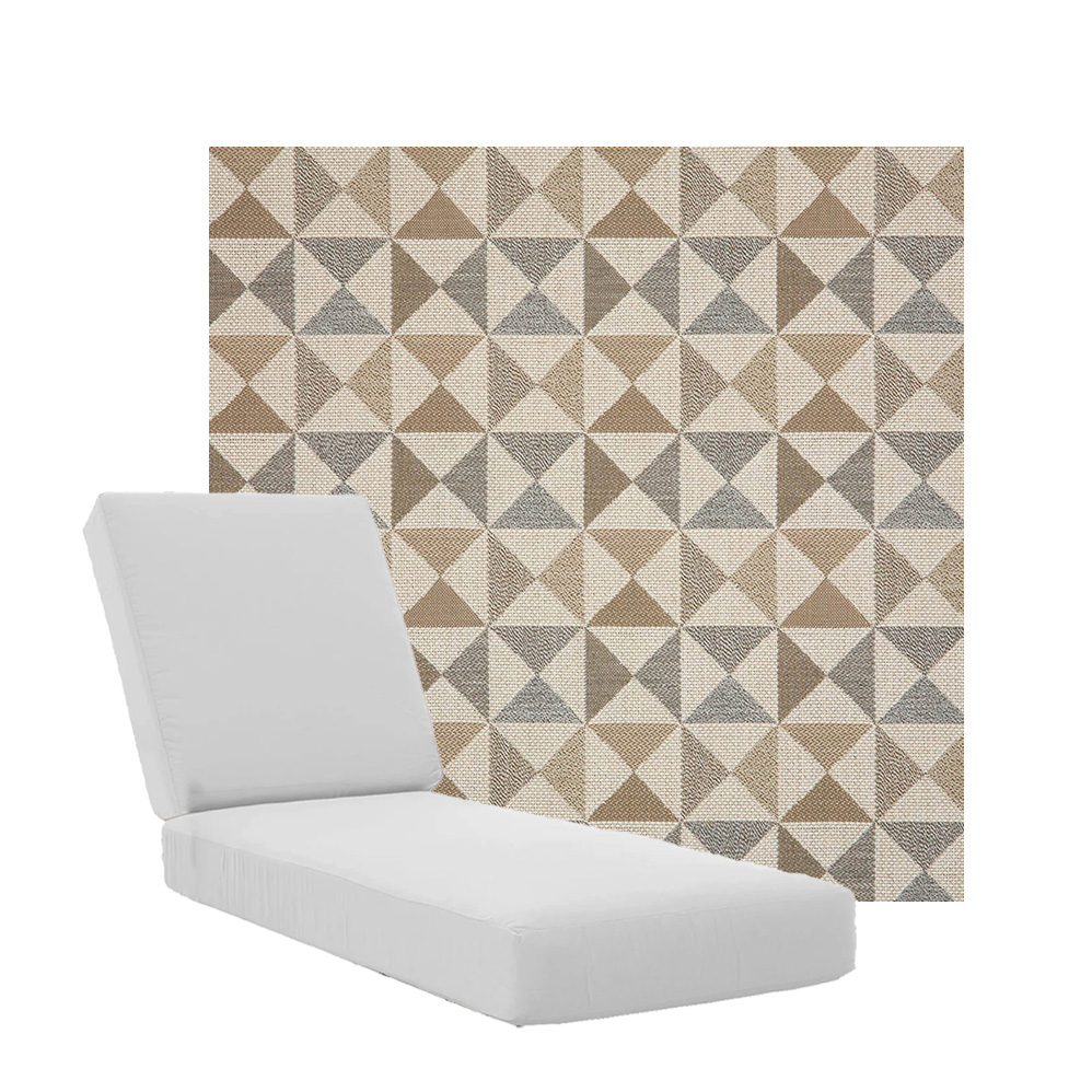 Boxed Chaise Lounge Cushions in Sunbrella Fabrics. Separate Seat and Back Cushions. Available in 3 sizes to fit a variety of outdoor furniture styles. Our boxed Chaise Lounge Cushions feature foam and fiber, piping and zipper openings. All chaise lounge replacement cushions are custom made to order in your choice of fabric and size. Made in the USA. Lead times may vary depending on the time of year.