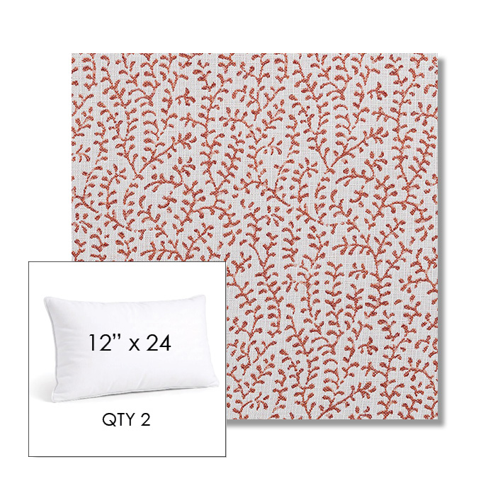 Custom 12" x 24" Lumbar Pillow SET OF TWO, square outdoor pillows available in over 700 Sunbrella® fabrics. Choose piping or knife-edge finish with optional covered button detail. Each pillow includes a zipper opening and premium outdoor insert for comfort, durability, and long-lasting outdoor performance.