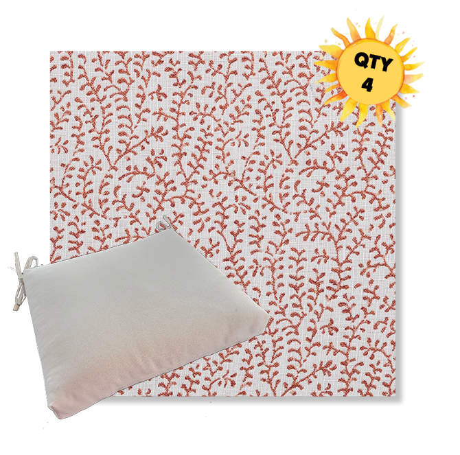 Sunbrella® Luxury Seat Cushions — Bundle of 4 (Custom Made) Upgrade your outdoor dining space with a coordinated set of four luxury Sunbrella® seat cushions, crafted in our most upscale Sunbrella fabric selections. These are made for patios that don’t do “average”—the kind of outdoor setting where every detail feels intentional, elevated, and unmistakably well-designed. Each bundle is custom made to order for a tailored look and feel, with premium construction designed for long-lasting comfort and performance. Choose from four versatile sizes to fit most outdoor dining chair styles, then select a higher-end Sunbrella® fabric that instantly sets your space apart from the run-of-the-mill cushion look.