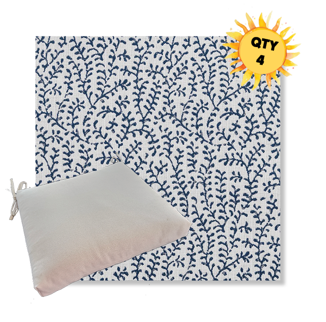 Sunbrella® Luxury Seat Cushions — Bundle of 4 (Custom Made) Upgrade your outdoor dining space with a coordinated set of four luxury Sunbrella® seat cushions, crafted in our most upscale Sunbrella fabric selections. These are made for patios that don’t do “average”—the kind of outdoor setting where every detail feels intentional, elevated, and unmistakably well-designed. Each bundle is custom made to order for a tailored look and feel, with premium construction designed for long-lasting comfort and performance. Choose from four versatile sizes to fit most outdoor dining chair styles, then select a higher-end Sunbrella® fabric that instantly sets your space apart from the run-of-the-mill cushion look.