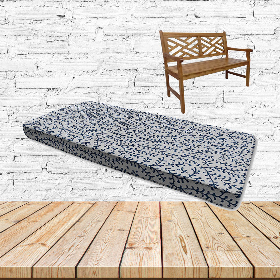 Order outdoor bench cushions in widths from 40" to 53" wide in 1/2" increments and
