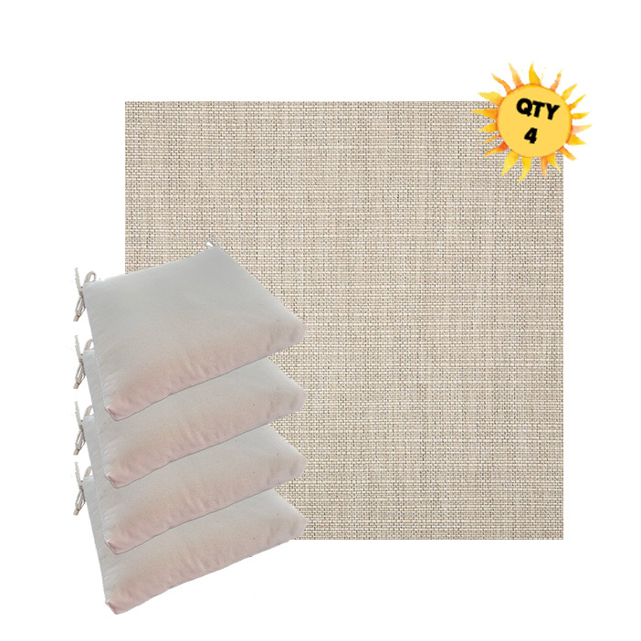 Each cushion is available in 4 universal sizes so you can choose the best fit for your existing outdoor dining furniture. A generous set of fabric ties keeps the cushion securely in place, even when people shift and move during meals. The interior features a combination of outdoor-rated foam and plush polyester fiber, creating a seat that feels soft yet supportive and holds its shape over time.