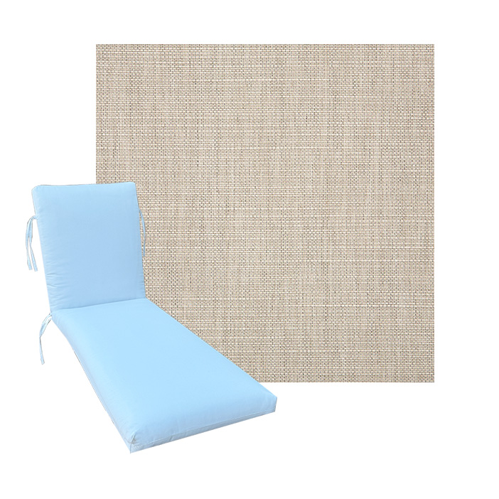 Classic Style Chaise Lounge Cushion. Premium Universal Chaise Lounge Replacement Cushions in 3 common sizes. Simple center seam design. No piping. Designed to accommodate aluminum, wood, and PVC furniture. Includes fabric ties at back and hinge. Polyester/densified fiber fill.