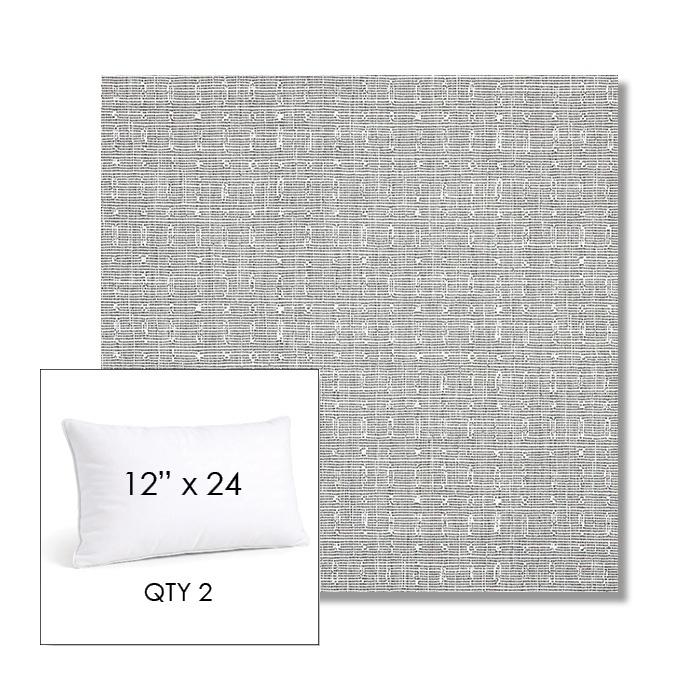 Custom 12" x 24" Lumbar Pillow SET OF TWO, square outdoor pillows available in over 700 Sunbrella® fabrics. Choose piping or knife-edge finish with optional covered button detail. Each pillow includes a zipper opening and premium outdoor insert for comfort, durability, and long-lasting outdoor performance.