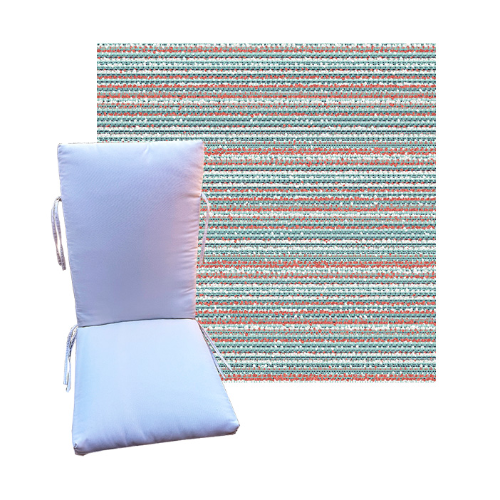 Order universal patio chair cushions in Outdura Outdoor Fabrics - Find a new colorful replacement cushion in 9 sizes - This style of patio chair cushion features a center seam, hinged design with fabric ties. These outdoor cushions are custom made to order in the fabric and size you need. See details on available sizes in the overview section below. BUY MORE and save.