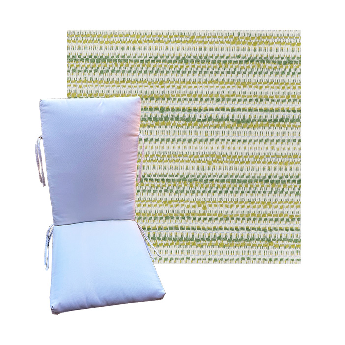 Order universal patio chair cushions in Outdura Outdoor Fabrics - Find a new colorful replacement cushion in 9 sizes - This style of patio chair cushion features a center seam, hinged design with fabric ties. These outdoor cushions are custom made to order in the fabric and size you need. See details on available sizes in the overview section below. BUY MORE and save.