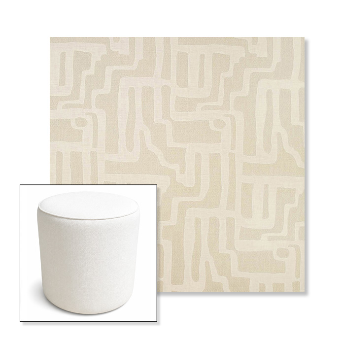Escher Alabaster | 16" Round x 18" Tall Outdoor Pouf or Ottoman | Sunbrella Fabrics