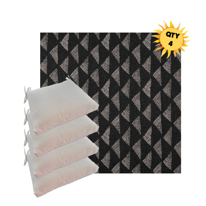 Each cushion is available in 4 universal sizes so you can choose the best fit for your existing outdoor dining furniture. A generous set of fabric ties keeps the cushion securely in place, even when people shift and move during meals. The interior features a combination of outdoor-rated foam and plush polyester fiber, creating a seat that feels soft yet supportive and holds its shape over time.