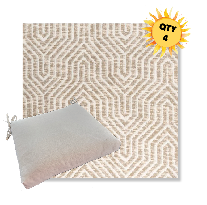 Sunbrella® Luxury Seat Cushions — Bundle of 4 (Custom Made) Upgrade your outdoor dining space with a coordinated set of four luxury Sunbrella® seat cushions, crafted in our most upscale Sunbrella fabric selections. These are made for patios that don’t do “average”—the kind of outdoor setting where every detail feels intentional, elevated, and unmistakably well-designed. Each bundle is custom made to order for a tailored look and feel, with premium construction designed for long-lasting comfort and performance. Choose from four versatile sizes to fit most outdoor dining chair styles, then select a higher-end Sunbrella® fabric that instantly sets your space apart from the run-of-the-mill cushion look.