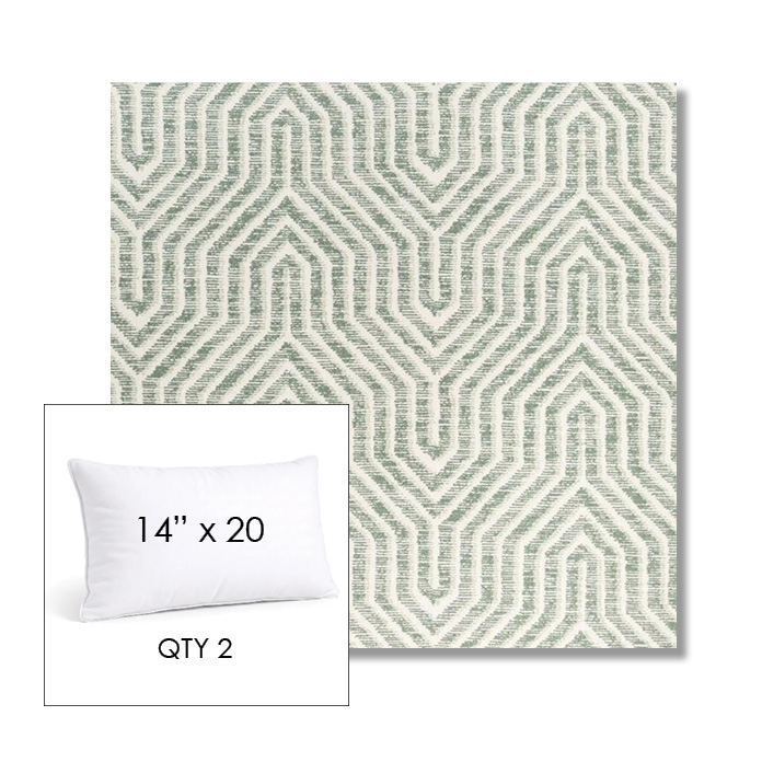 Custom 14" x 20" Lumbar Pillows - SET OF 2 square outdoor pillows available in over 700 Sunbrella® fabrics. Choose piping or knife-edge finish with optional covered button detail. Each pillow includes a zipper opening and premium outdoor insert for comfort, durability, and long-lasting outdoor performance.