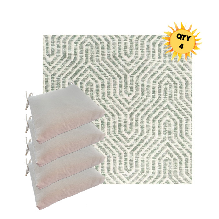 Each cushion is available in 4 universal sizes so you can choose the best fit for your existing outdoor dining furniture. A generous set of fabric ties keeps the cushion securely in place, even when people shift and move during meals. The interior features a combination of outdoor-rated foam and plush polyester fiber, creating a seat that feels soft yet supportive and holds its shape over time.