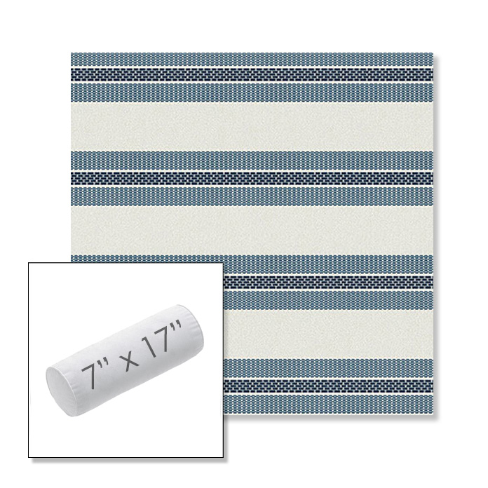 Custom 7" x 17" Outdoor Bolster Pillow Sunbrella® Fabric. Available in over 700 Sunbrella® fabrics. Comes standard with piping. Each pillow includes a zipper opening and premium outdoor insert for comfort, durability, and long-lasting outdoor performance.