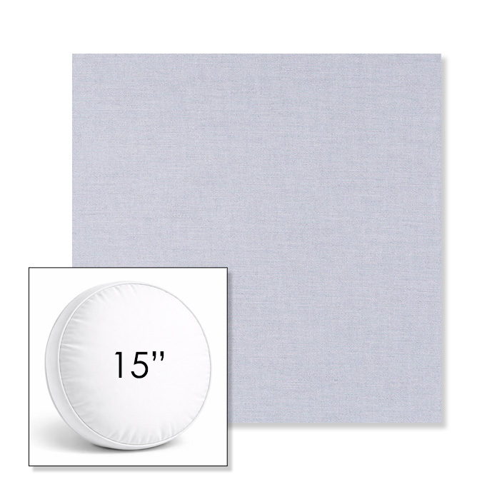 Custom 15" Round Boxed Sunbrella® Outdoor Pillow (3" Thick) available in over 700 Sunbrella® fabrics. Comes standard with piping. Optional covered button detail. Each pillow includes a zipper opening and premium outdoor insert for comfort, durability, and long-lasting outdoor performance.