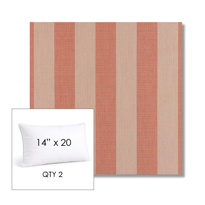 Custom 14" x 20" Lumbar Pillows - SET OF 2 square outdoor pillows available in over 700 Sunbrella® fabrics. Choose piping or knife-edge finish with optional covered button detail. Each pillow includes a zipper opening and premium outdoor insert for comfort, durability, and long-lasting outdoor performance.