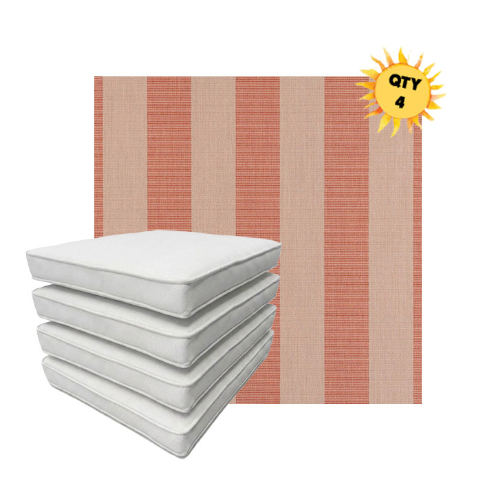 Bundles in sets of 4, the more sets you buy, the more your save. Available in hundreds of Sunbrella outdoor fabrics, each patio dining chair cushion is custom made to order in the size you need and that fabric of your choice.