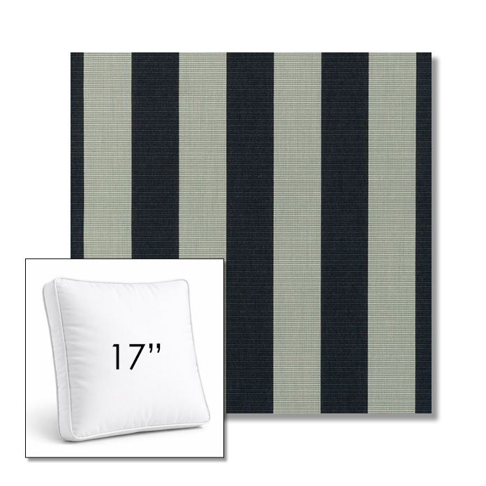 Custom 17" Square Boxed Sunbrella® Outdoor Pillow (3" Thick) available in over 700 Sunbrella® fabrics. Comes standard with piping. Optional covered button detail. Each pillow includes a zipper opening and premium outdoor insert for comfort, durability, and long-lasting outdoor performance.