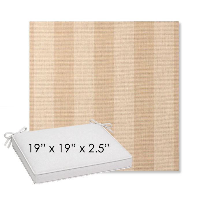 19" x 19" x 2.5" Thick outdoor dining chair seat cushion designed for a simple, ready-to-order fit. Features a boxed construction with piping, fabric ties, and zipper opening. Made in 700+ Sunbrella® fabrics for long-lasting outdoor performance.