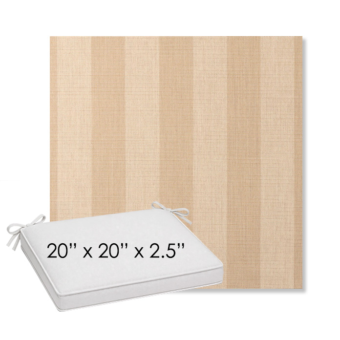 20" x 20" x 2.5" Thick outdoor dining chair seat cushion designed for a simple, ready-to-order fit. Features a boxed construction with piping, fabric ties, and zipper opening. Made in 700+ Sunbrella® fabrics for long-lasting outdoor performance.