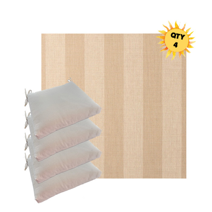 Each cushion is available in 4 universal sizes so you can choose the best fit for your existing outdoor dining furniture. A generous set of fabric ties keeps the cushion securely in place, even when people shift and move during meals. The interior features a combination of outdoor-rated foam and plush polyester fiber, creating a seat that feels soft yet supportive and holds its shape over time.