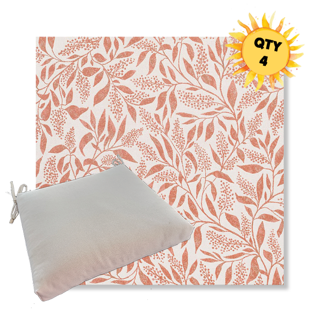 Sunbrella® Luxury Seat Cushions — Bundle of 4 (Custom Made) Upgrade your outdoor dining space with a coordinated set of four luxury Sunbrella® seat cushions, crafted in our most upscale Sunbrella fabric selections. These are made for patios that don’t do “average”—the kind of outdoor setting where every detail feels intentional, elevated, and unmistakably well-designed. Each bundle is custom made to order for a tailored look and feel, with premium construction designed for long-lasting comfort and performance. Choose from four versatile sizes to fit most outdoor dining chair styles, then select a higher-end Sunbrella® fabric that instantly sets your space apart from the run-of-the-mill cushion look.