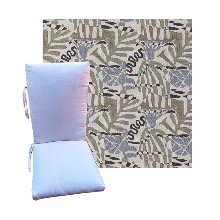 Order universal patio chair cushions in Outdura Outdoor Fabrics - Find a new colorful replacement cushion in 9 sizes - This style of patio chair cushion features a center seam, hinged design with fabric ties. These outdoor cushions are custom made to order in the fabric and size you need. See details on available sizes in the overview section below. BUY MORE and save.