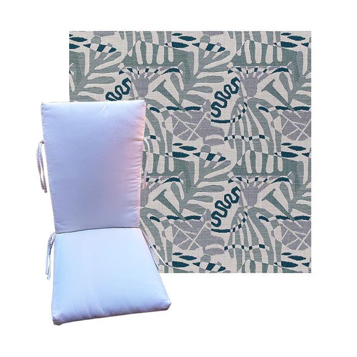 Order universal patio chair cushions in Outdura Outdoor Fabrics - Find a new colorful replacement cushion in 9 sizes - This style of patio chair cushion features a center seam, hinged design with fabric ties. These outdoor cushions are custom made to order in the fabric and size you need. See details on available sizes in the overview section below. BUY MORE and save.