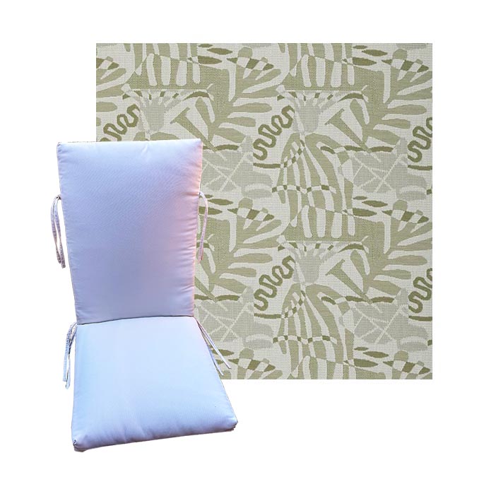 Order universal patio chair cushions in Outdura Outdoor Fabrics - Find a new colorful replacement cushion in 9 sizes - This style of patio chair cushion features a center seam, hinged design with fabric ties. These outdoor cushions are custom made to order in the fabric and size you need. See details on available sizes in the overview section below. BUY MORE and save.