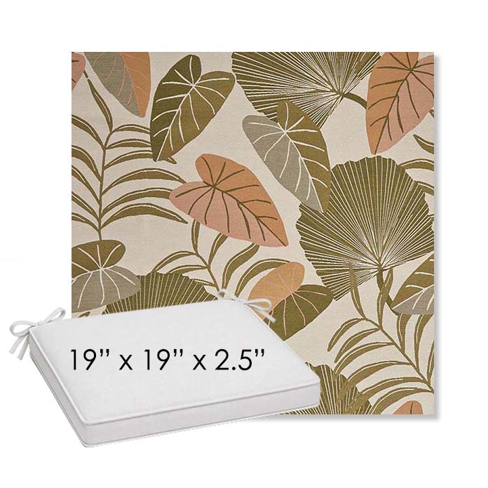 Upgrade your outdoor dining chair seating with our 19" wide x 19" deep x 2.5" thick outdoor dining chair pad or cushion designed for a clean, tailored fit and effortless ordering. Built in a structured boxed style with piping and fabric ties, this cushion delivers both comfort and durability for everyday outdoor living. Whether you're replacing an existing cushion or refreshing your outdoor dining space, this size is ideal for all styles of outdoor patio dining chairs.