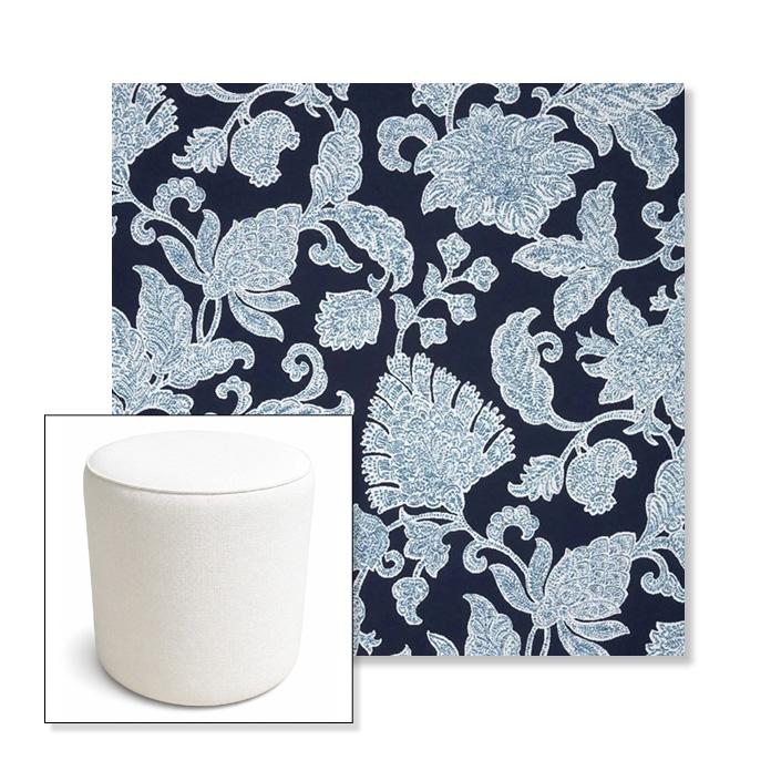 Floral Song Navy | 16" Round x 18" Tall Outdoor Pouf or Ottoman | Sunbrella Fabrics