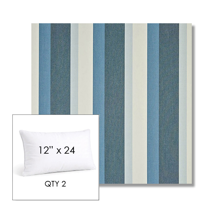 Custom 12" x 24" Lumbar Pillow SET OF TWO, square outdoor pillows available in over 700 Sunbrella® fabrics. Choose piping or knife-edge finish with optional covered button detail. Each pillow includes a zipper opening and premium outdoor insert for comfort, durability, and long-lasting outdoor performance.