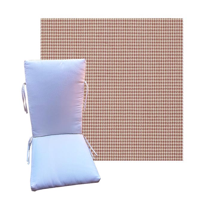Order universal patio chair cushions in Outdura Outdoor Fabrics - Find a new colorful replacement cushion in 9 sizes - This style of patio chair cushion features a center seam, hinged design with fabric ties. These outdoor cushions are custom made to order in the fabric and size you need. See details on available sizes in the overview section below. BUY MORE and save.