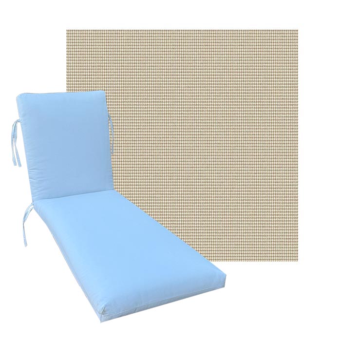 Classic Style Chaise Lounge Cushion. Premium Universal Chaise Lounge Replacement Cushions in 3 common sizes. Simple center seam design. No piping. Designed to accommodate aluminum, wood, and PVC furniture. Includes fabric ties at back and hinge. Polyester/densified fiber fill.