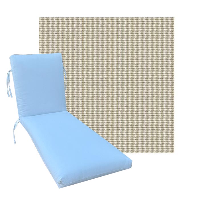 Classic Style Chaise Lounge Cushion. Premium Universal Chaise Lounge Replacement Cushions in 3 common sizes. Simple center seam design. No piping. Designed to accommodate aluminum, wood, and PVC furniture. Includes fabric ties at back and hinge. Polyester/densified fiber fill.