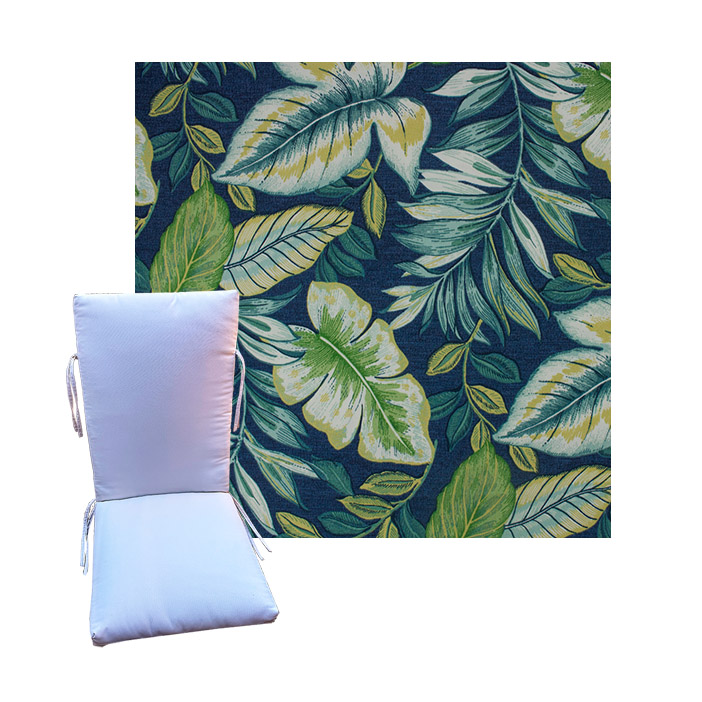 Order universal patio chair cushions in Richloom Solarium Outdoor Fabrics - Find a new colorful replacement cushion in 9 sizes - This style of patio chair cushion features a center seam, hinged design with fabric ties. These outdoor cushions are custom made to order in the fabric and size you need.