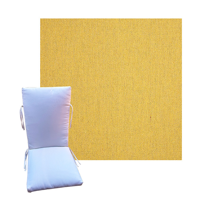 Order universal patio chair cushions in Sunbrella Outdoor Fabrics - Find a new colorful replacement cushion in 9 sizes - This style of patio chair cushion features a center seam, hinged design with fabric ties. These outdoor cushions are custom made to order in the fabric and size you need.