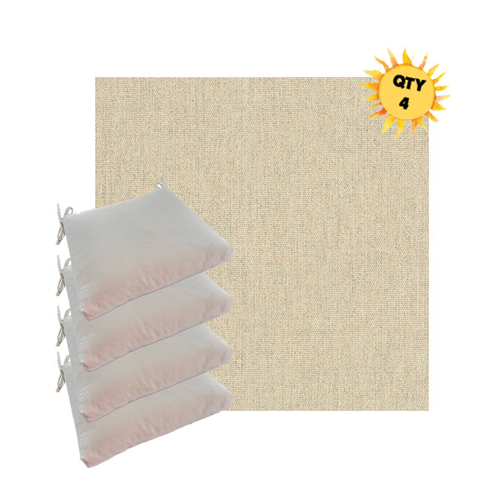 Sunbrella® Outdoor Dining Chair Seat Cushions — Bundle of 4 (Custom Made) Upgrade your outdoor dining space with a coordinated set of four luxury Sunbrella® seat cushions, crafted in our most upscale Sunbrella fabric selections. These are made for patios that don’t do “average”—the kind of outdoor setting where every detail feels intentional, elevated, and unmistakably well-designed. Each bundle is custom made to order for a tailored look and feel, with premium construction designed for long-lasting comfort and performance. Choose from four versatile sizes to fit most outdoor dining chair styles, then select a higher-end Sunbrella® fabric that instantly sets your space apart from the run-of-the-mill cushion look.
