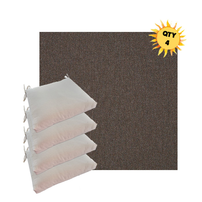 Sunbrella® Outdoor Dining Chair Seat Cushions — Bundle of 4 (Custom Made) Upgrade your outdoor dining space with a coordinated set of four luxury Sunbrella® seat cushions, crafted in our most upscale Sunbrella fabric selections. These are made for patios that don’t do “average”—the kind of outdoor setting where every detail feels intentional, elevated, and unmistakably well-designed. Each bundle is custom made to order for a tailored look and feel, with premium construction designed for long-lasting comfort and performance. Choose from four versatile sizes to fit most outdoor dining chair styles, then select a higher-end Sunbrella® fabric that instantly sets your space apart from the run-of-the-mill cushion look.
