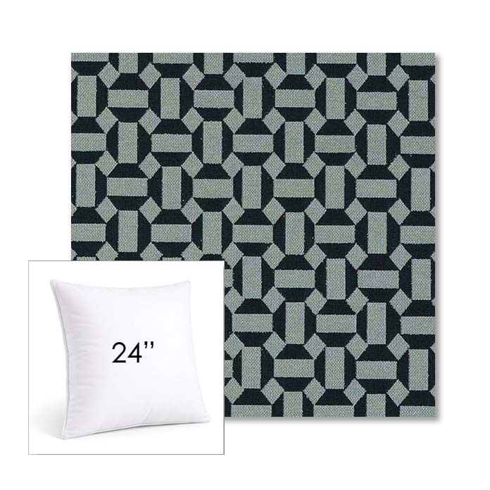 Custom 24" square outdoor pillows available in over 700 Sunbrella® fabrics. Choose piping or knife-edge finish with optional covered button detail. Each pillow includes a zipper opening and premium outdoor insert for comfort, durability, and long-lasting outdoor performance.