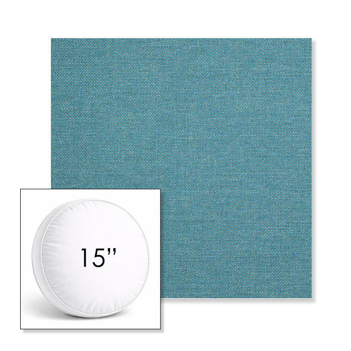 Custom 15" Round Boxed Sunbrella® Outdoor Pillow (3" Thick) available in over 700 Sunbrella® fabrics. Comes standard with piping. Optional covered button detail. Each pillow includes a zipper opening and premium outdoor insert for comfort, durability, and long-lasting outdoor performance.