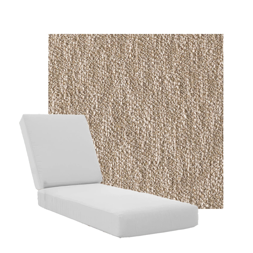 Boxed Chaise Lounge Cushions in Sunbrella Fabrics. Separate Seat and Back Cushions. Available in 3 sizes to fit a variety of outdoor furniture styles. Our boxed Chaise Lounge Cushions feature foam and fiber, piping and zipper openings. All chaise lounge replacement cushions are custom made to order in your choice of fabric and size. Made in the USA. Lead times may vary depending on the time of year.