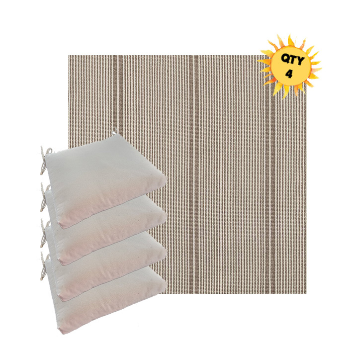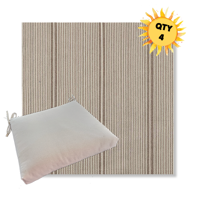 Sunbrella® Luxury Seat Cushions — Bundle of 4 (Custom Made) Upgrade your outdoor dining space with a coordinated set of four luxury Sunbrella® seat cushions, crafted in our most upscale Sunbrella fabric selections. These are made for patios that don’t do “average”—the kind of outdoor setting where every detail feels intentional, elevated, and unmistakably well-designed. Each bundle is custom made to order for a tailored look and feel, with premium construction designed for long-lasting comfort and performance. Choose from four versatile sizes to fit most outdoor dining chair styles, then select a higher-end Sunbrella® fabric that instantly sets your space apart from the run-of-the-mill cushion look.