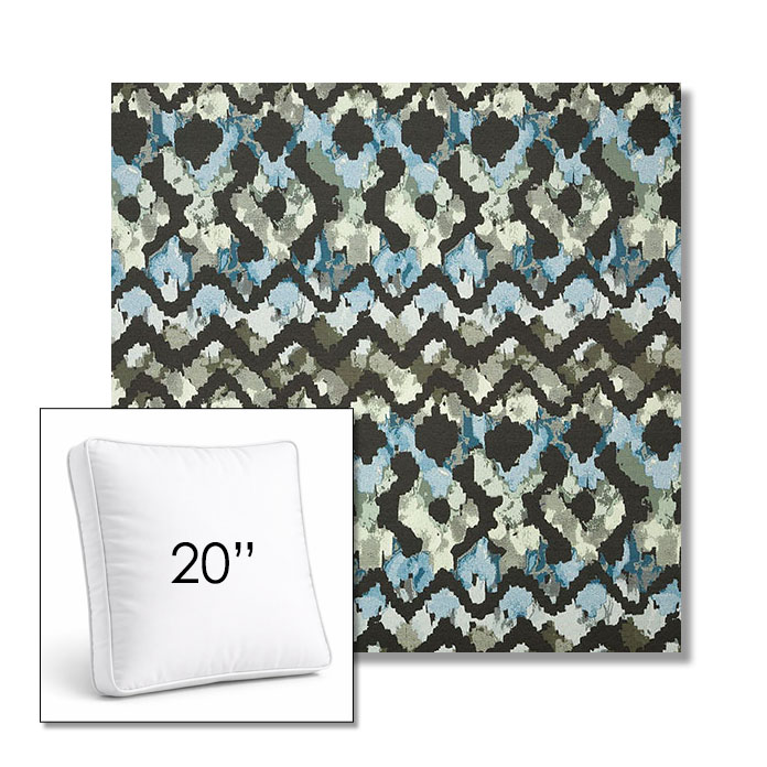 Custom 20" Square Boxed Sunbrella® Outdoor Pillow (3" Thick) available in over 700 Sunbrella® fabrics. Comes standard with piping. Optional covered button detail. Each pillow includes a zipper opening and premium outdoor insert for comfort, durability, and long-lasting outdoor performance.