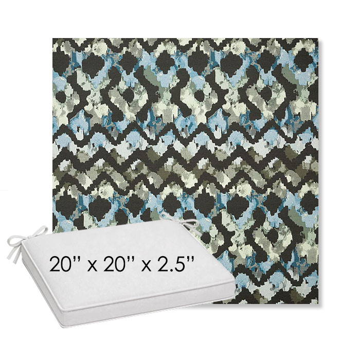 20" x 20" x 2.5" Thick outdoor dining chair seat cushion designed for a simple, ready-to-order fit. Features a boxed construction with piping, fabric ties, and zipper opening. Made in 700+ Sunbrella® fabrics for long-lasting outdoor performance.