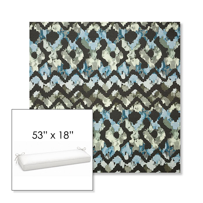 53" outdoor bench cushion designed for a simple, ready-to-order fit. Features a boxed construction with piping, fabric ties, and zipper opening. Made in 700+ Sunbrella® fabrics for long-lasting outdoor performance.