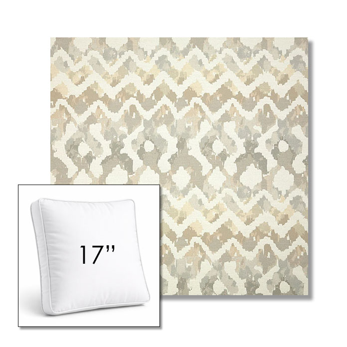 Custom 17" Square Boxed Sunbrella® Outdoor Pillow (3" Thick) available in over 700 Sunbrella® fabrics. Comes standard with piping. Optional covered button detail. Each pillow includes a zipper opening and premium outdoor insert for comfort, durability, and long-lasting outdoor performance.