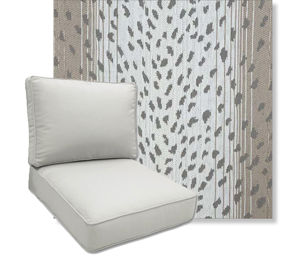 Our Easy order deep seating replacement cushion come in 4 common sizes and in beautiful outfoor printed polyester fabrics from Richloom Solarium..