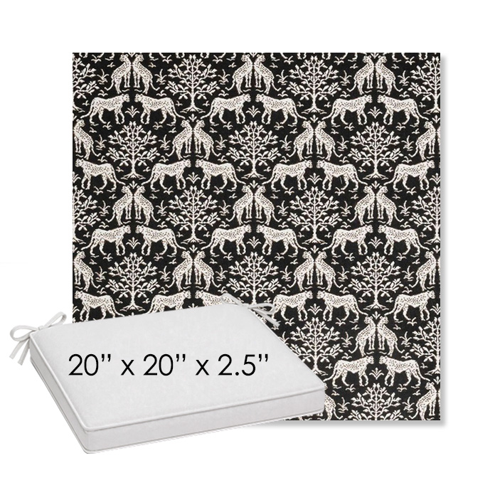20" x 20" x 2.5" Thick outdoor dining chair seat cushion designed for a simple, ready-to-order fit. Features a boxed construction with piping, fabric ties, and zipper opening. Made in 700+ Sunbrella® fabrics for long-lasting outdoor performance.