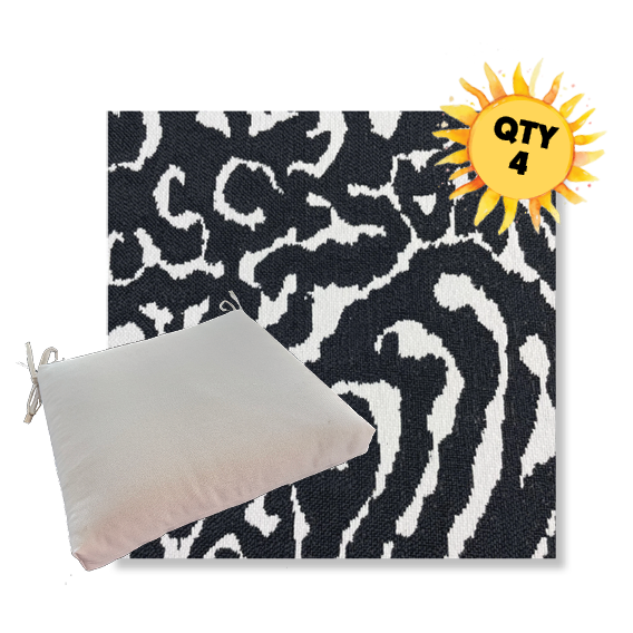Each cushion is available in 4 universal sizes so you can choose the best fit for your existing outdoor dining furniture. A generous set of fabric ties keeps the cushion securely in place, even when people shift and move during meals. The interior features a combination of outdoor-rated foam and plush polyester fiber, creating a seat that feels soft yet supportive and holds its shape over time.